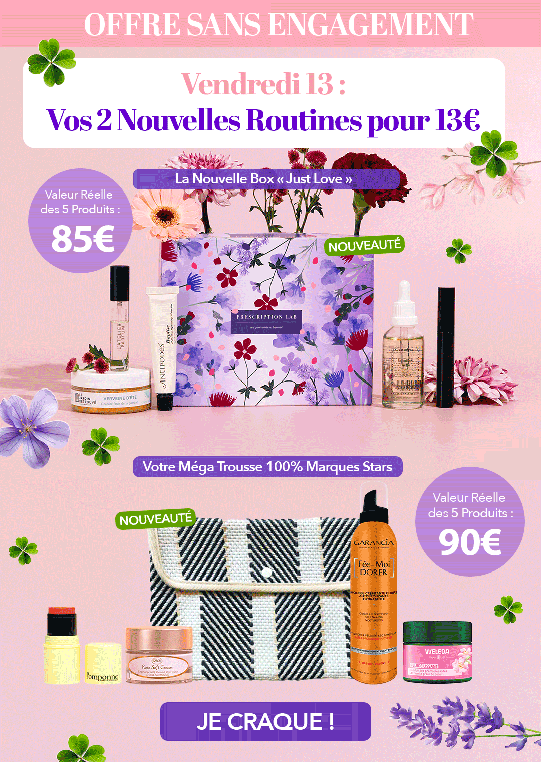 Célébrez le Vendredi 13 avec une offre 100% Chance : recevez vos 2 Nouvelles Routines (valeur : 175€), pour seulement 13€ SANS ENGAGEMENT ! 🍀✨